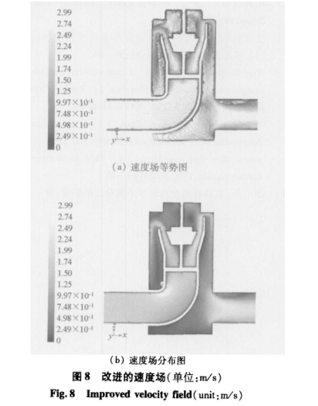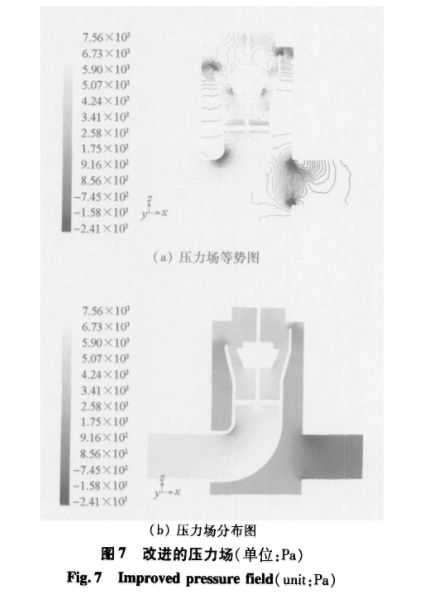 改(gǎi)進結構(gòu)後的仿(páng)真結果(guo)如圖7和(he)圖8所示(shi),由圖可(kě)知:①改進(jìn)☎️結構後(hòu)流場的(de)壓力分(fèn)布得到(dào)改善,浮(fú)子組件(jiàn)受力接(jie)近平衡(héng)💚,但是,由(yóu)于整流(liú)器的引(yǐn)人,導緻(zhi)了整🐆流(liu)器前👅後(hou)壓差增(zeng)大,帶來(lái)比較大(da)的壓損(sun);②改進結(jie)構後流(liú)場的🙇🏻速(su)度分布(bù)比較均(jun1)勻,特别(bie)是使浮(fu)子組件(jian)♻️周.圍沒(mei)有太大(dà)的速度(du)差,同樣(yang)由于整(zhěng)流器的(de)使用,也(ye)使浮子(zi)組🙇🏻件的(de)前流場(chang)更加複(fú)雜.