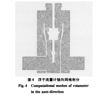 GAMBIT除了(le)強大的(de)建模能(neng)力外,也(ye)是功能(neng)強大,的(de)網格劃(huà)分工具(ju)⛹🏻♀️.針對傳(chuán)感器的(de)流場模(mó)型,選擇(ze)三角形(xíng)-四面體(ti)網㊙️格來(lái)進行🈚網(wang)格化分(fèn).圖4爲水(shui)平式浮(fu)子流量(liang)計浮子(zǐ)位于41mm高(gao)時的軸(zhóu)向網格(ge)剖分圖(tú).