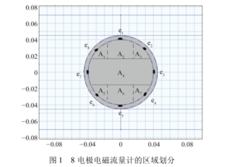 在使用(yong)多電極電磁(ci)流量計進行(hang)流量檢測時(shi),電極數目的(de)選擇至關重(zhòng)要。數目增多(duo)可提高測量(liàng)精度,但是制(zhì)作成本與制(zhi)♌作難度會大(da)幅提高,計算(suan)時間也會不(bú)可避免地增(zeng)加,而若數目(mu)太少,數據精(jīng)度較低,意義(yì)不㊙️大。故本文(wen)采用了一種(zhǒng)8電極電磁流(liú)量計🔞,旨在提(tí)高測量精度(du)的同時保證(zheng)時效性與成(chéng)本。