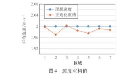 在(zài)設置爲均勻(yún)流速的情況(kuang)下,對感應電(dian)勢差仿真⁉️數(shu)據進行正則(ze)化計算後的(de)流速分布如(rú)圖4所示,從圖(tú)4中可以看出(chū),仿真求得的(de)速度重構值(zhi)精度較高,誤(wu)差在1.50%以内。
