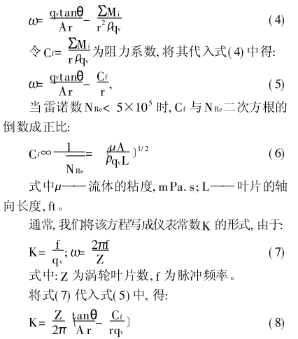 由式(5)和式(shì)(6)可見:當流體(ti)的粘度增大(dà)時,渦輪的轉(zhuǎn)動角速度變(bian)小;當流體密(mi)度變大時,渦(wō)輪的轉動角(jiǎo)速🆚度也随之(zhi)🏃🏻♂️增大🤟。在流體(tǐ)速度較小(相(xiang)當于層流狀(zhuang)态)時,渦輪⭐的(de)頻率響應非(fēi)線性,且受流(liú)體性質變化(huà)影響較大;當(dang)流體速度較(jiao)高(相當于湍(tuān)流狀态)時,式(shi)變👅小,渦輪響(xiang)應近似線性(xìng),儀💋器常數K基(ji)本上不受流(liu)體粘度變化(hua)影響。