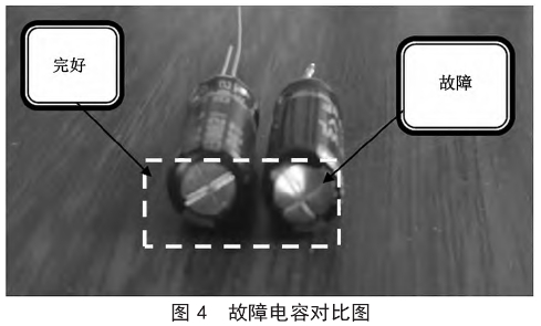 檢測過程中發現(xian),此電容損壞的主(zhǔ)要現象爲電容.鼓(gǔ)包。故障電容對比(bǐ)圖,如圖4所示。
