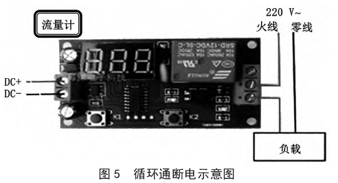 采用無限循(xun)環定時開關模塊(kuài),對更換後更大容(rong)量⛹🏻♀️的電容進行☀️連(lian)續通斷電實驗。根(gen)據對流量計開機(jī)時間的計量發現(xiàn),完全進入開機狀(zhuàng)态需要20s,因此設置(zhi)通電🆚時間爲🏃🏻♂️20s。循環(huan)通斷電示意圖如(ru)圖5所示。