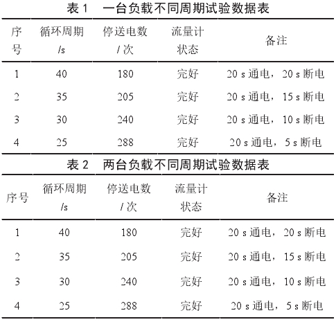 一台負載(zai)不同循環周期停(ting)送電的實試驗情(qing)況,如表1所示。兩台(tai)負載不同循環周(zhou)期停送電試驗情(qíng)況,如表❄️2所示。25s循環(huan)周期💞不同數量負(fù)載停送電試驗情(qing)況,如表3所示。