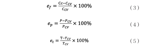 體(ti)積修正儀的主(zhǔ)示值誤差由轉(zhuǎn)換系數誤差(ec)或(huò)基準條件下的(de)體積轉換誤差(cha)(ev)表示,分量誤差(cha)包括溫度測量(liàng)誤差(et)、壓力測量(liang)誤差(ep)和積算器(qì)的誤差(ef)。