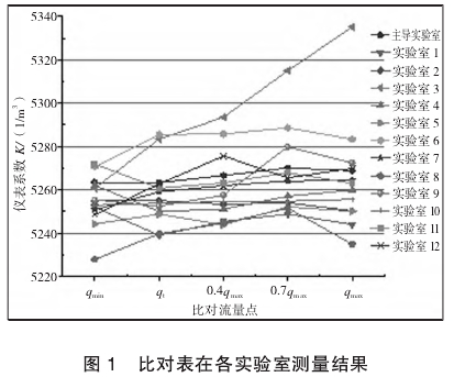 本次比對(dui),各參比實驗(yàn)室完成率爲(wei)100%,比對完成後(hou),主導實驗室(shi)對各參比實(shí)驗室的數據(jù)進行了彙總(zong)統計,各實驗(yan)室測量結果(guo)如圖1所示。由(yóu)圖1可以看出(chu),實驗室3的測(ce)量結果随着(zhe)流量增大而(ér)增大,與其他(ta)參比實驗室(shi)的測量結果(guo)産生了較大(da)偏移,需進行(hang)異常值判别(bié)。