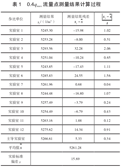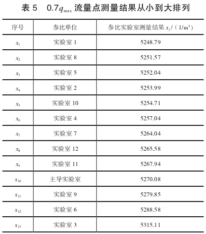 綜上,考慮比(bǐ)對工作的嚴(yán)謹性,在此次(cì)異常值判别(bié)時,選用格拉(lā)布斯準則和(hé)狄克遜準則(zé)綜合進行。通(tong)過異常值判(pan)别結果分析(xi)可知:在0.4qmax流量(liàng)點,實驗室3的(de)測量結果經(jing)過兩種判别(bié)準則判斷均(jun1)不屬于異常(chang)值,可正常參(cān)與計算;在0.7max.流(liu)量點,實驗室(shì)3的測量結果(guo)用格拉布斯(si)準則判别屬(shu)于異常值,用(yong)狄克遜準則(zé)判别不屬于(yú)異常值,兩種(zhong)判别方法結(jie)論出現矛盾(dùn)。比對工作對(dui)統計數值要(yao)求較高,出現(xiàn)既可能是異(yì)常值又可能(néng)不是異常值(zhí)的情況時,考(kǎo)慮将此次測(ce)量結果作爲(wei)異常值考慮(lǜ)。最終将0.7qmax流量(liang)點實驗室3的(de)測量結果作(zuo)爲異常值,予(yǔ)以剔除。