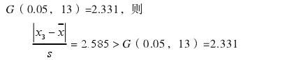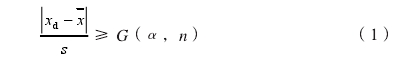 設(she)在一組重複(fu)觀測值xi中,其(qí)殘差vi的絕對(duì)值lvil最大者爲(wei)可疑值xd,在給(gěi)定的包含概(gài)率爲p=0.95或p=0.99,也就(jiù)是顯著性水(shuǐ)平爲α=1-p=0.01或0.05時,如(rú)果滿足式(1),可(kě)以判定xa爲異(yi)常值。