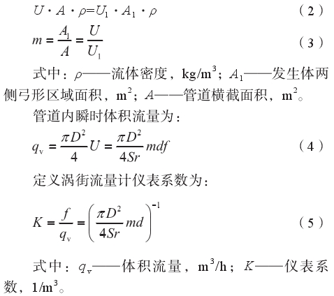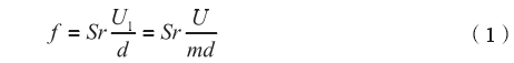 式中(zhong):ƒ一旋渦分(fen)離頻率,Hz;Sr-斯(sī)特勞哈爾(ěr)數;U1一發生(shēng)體兩側流(liú)體平均流(liú)速,m/s;U一管道(dao)來流平均(jun1)流速,m/s;m一發(fā)生體兩側(ce)弓形流通(tong)面積🥵與管(guan)道橫截面(miàn)積之比。