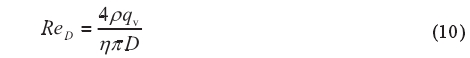 式中:qv一(yi)管道内體(ti)積流量,m³/h;p一(yī)介質密度(dù),kg/m³;η-介質動力(lì)粘度,Pa.s;D-管道(dao)直👄徑,m。