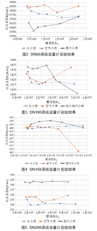 按(àn)照2.3中的實(shí)驗方案對(dui)四台不同(tóng)口徑的渦(wo)街流.量計(jì)在水、空氣(qì)💘、蒸汽三種(zhǒng)介質下進(jin)行儀表系(xì)數實流标(biao)定實驗,實(shi)驗結果如(ru)圖2~5所示。