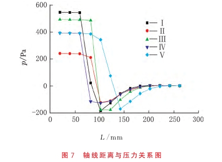 沿軸向(xiàng)的距離L與(yǔ)壓力的關(guān)系見圖7。