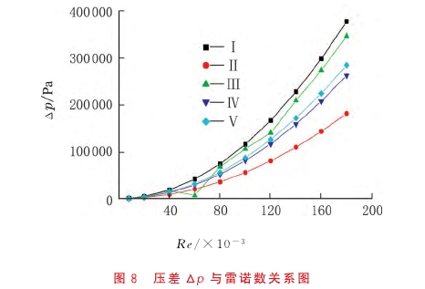 壓差△p與(yu)雷諾數的(de)關系曲線(xian)見圖8。