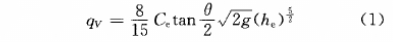 1)三(sān)角堰結(jié)構如圖(tu)1所示,三(san)角堰流(liú)量公式(shì)如下: