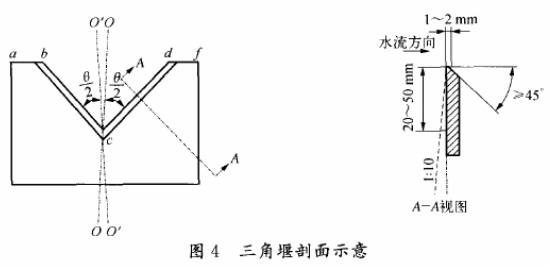 2)三角形(xíng)缺口堰(yàn)頂線bc,cd爲(wèi)直線。