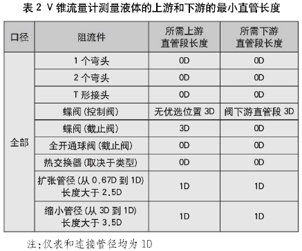 (2)液體測量(liang),雷諾數範圍(wei)(Re)>200000,V錐流量計測(ce)量液體的上(shàng)遊和下遊的(de)最小直管長(zhang)度見表2。若≥0.65,表(biǎo)中的直管段(duan)長度需要增(zeng)加1D.。