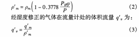經濕(shī)度修正(zheng)的氣體(tǐ)在流量(liàng)計處得(dé)密度ρ'm爲(wei):