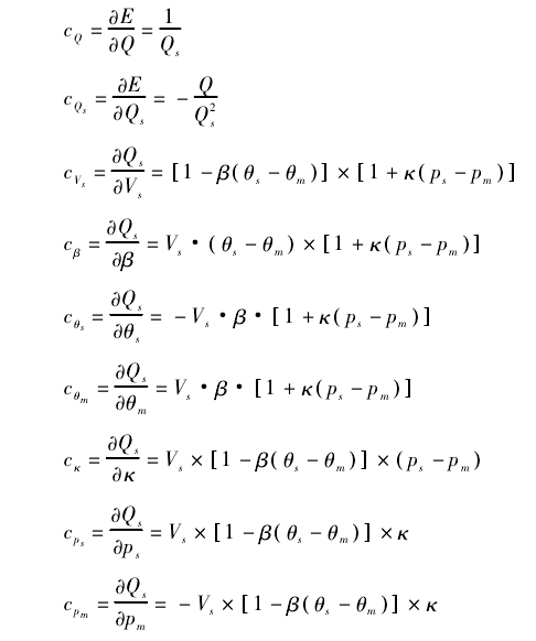 由測(cè)量模型求得靈敏(mǐn)系數: