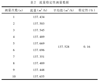在測量過程中,裝(zhuang)置的流量穩定性(xing)對單次測量時間(jian)以及單次測量标(biāo)準器的實際累積(jī)體積有影響🐇。因此(cǐ)應考慮流量穩定(ding)性對測得值的影(yǐng)響。以最大流量點(diǎn)qmax、=140m3/h爲例,進👌行各累計(ji)時間❌之間的流量(liàng)穩定性試驗,連續(xù)測量10次,其測量數(shù)據如表2所示。