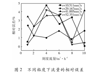 令仿(pang)真流量(liang)爲q,則相(xiang)對誤差(chà)δy=1(qf-qv0)I/qy0×100%,不同粘(zhan)度下流(liú)量的相(xiang)對誤🤩差(chà)如圖2所(suo)示。
