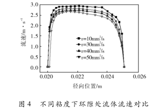 從圖4可(kě)以看出(chū),環隙處(chu)流體的(de)速度随(sui)着粘度(dù)的增⭐大(dà)而減小(xiao)💃。原因是(shi)同一刻(ke)度流量(liàng)下,環隙(xì)的面積(jī)是相同(tóng)的,而流(liu)體介質(zhi)的粘度(dù)增大,則(ze)其内.部(bu)摩擦力(lì)🏃♀️消耗增(zeng)大,使流(liú)🔞過環隙(xi)處的速(su)度降低(di)。