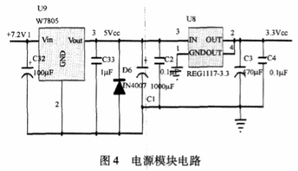 MSP430系(xi)列單片機(ji)的工作電(dian)源--般是1.8V~3.6V,并(bìng)且功耗極(jí)低,電池電(dian)壓通🐉過W7805轉(zhuan)換成+5V電源(yuán)。如圖4所示(shi),該芯片輸(shu)人5V,輸出電(diàn)壓爲3.3V,電流(liu)爲800mA,完全🈲能(neng)滿足大多(duō)數低功耗(hào)應用場合(he)的要求,也(yě)能滿足本(ben)系統的功(gōng)耗要求。