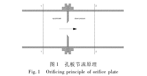 孔闆流(liu)量計計量(liang)原理如圖(tú)1所示。孔闆(pǎn)前後取截(jie)面1和2,根據(jù)兩截面壓(ya)差換算出(chū)某一時刻(kè)天然氣流(liú)量。