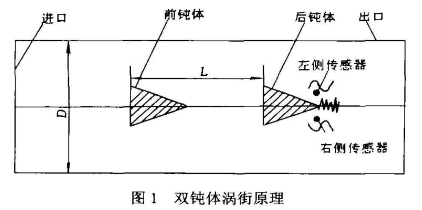 1雙(shuang)鈍體渦街流量(liàng)計的原理