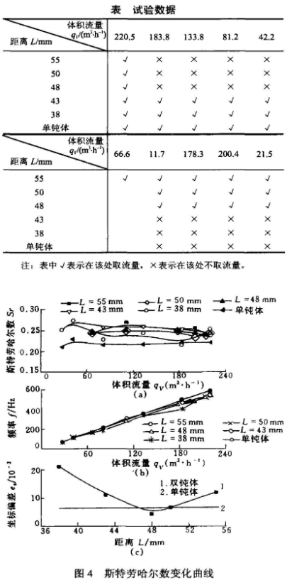 3.1雙鈍體組合渦(wo)街振動頻率試(shì)驗研究