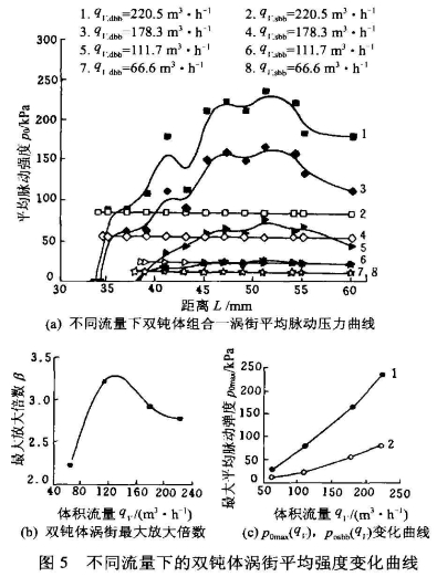 圖5b是不同流量(liàng)下的渦街平均(jun)脈動強度最大(da)的放大倍數✌️,這(zhe)時定義
