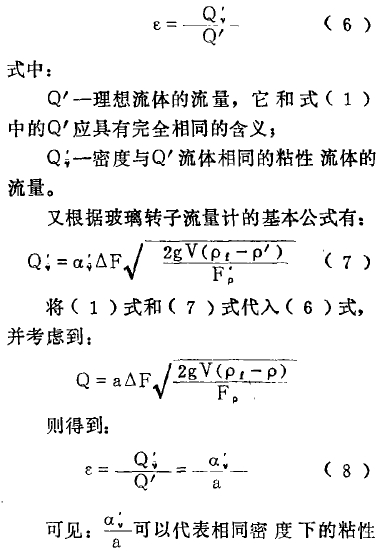 粘度修(xiu)正系數(shù)應理解(jie)爲密度(du)相同的(de)粘性流(liú)體與理(li)想流體(tǐ)在流量(liàng)計的同(tóng)一刻度(dù)指示值(zhi)下,它們(men)的實際(jì)流量值(zhi)之比,也(yě)即,修正(zhèng)系數Ɛ等(děng)于: