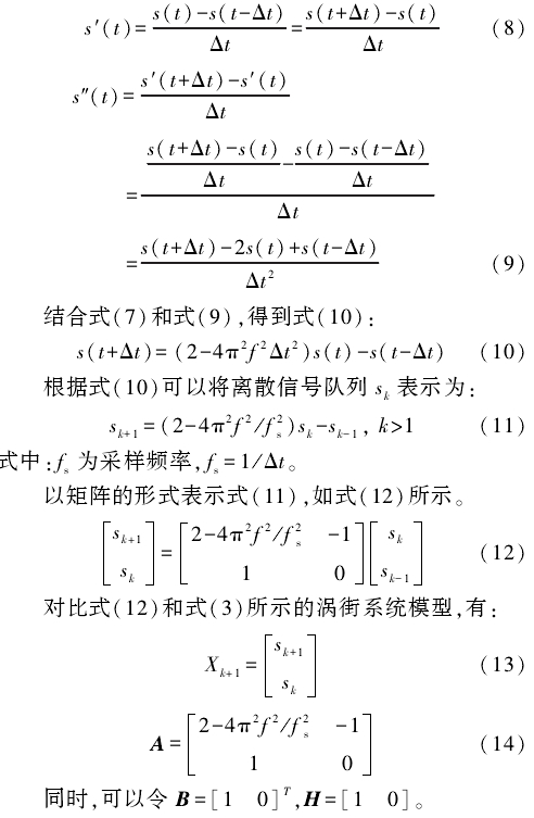 假(jiǎ)設,渦街信号(hào)的數學模型(xíng)如式(5)所示: