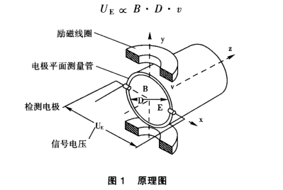 電磁流量(liang)計的基本(běn)原理是以(yi)法拉第電(dian)磁感應定(ding)律🔞爲基🍓礎(chu)🔞,即導體在(zai)磁場中作(zuò)切割磁力(li)線運動時(shi),在其兩端(duan)🙇🏻産生感應(yīng)💋電動勢。該(gāi)原理用于(yú)測量管道(dao)🌈内流動的(de)導電性流(liú)體。導電性(xing)🥰液體在🧡垂(chuí)直于磁場(chang)的非磁性(xìng)測量管道(dào)内流動,并(bìng)且流體流(liú)動的方向(xiang)與磁場方(fāng)向相垂直(zhí)(見圖⭐1),産生(shēng)與流量成(cheng)比例的感(gan)應電勢,流(liu)體中産生(shēng)的感應電(diàn)動勢被位(wei)于管✊子徑(jìng)向兩端的(de)一對電極(jí)拾取,該信(xìn)号電壓Up與(yǔ)磁場強度(du)B、電極間距(ju)離D和平均(jun)流速。成正(zheng)比。磁場強(qiáng)度B和電極(ji)♋距離D是常(cháng)數,所以信(xìn)号☂️電壓與(yu)平均流速(su)v成正比。計(ji)✊算公式如(ru)下: