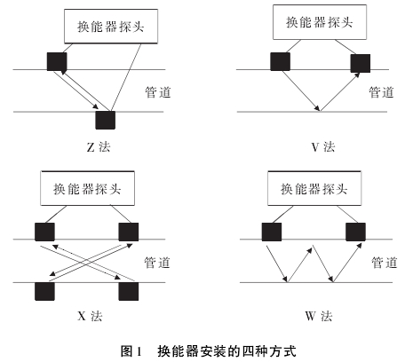 換能器安裝方(fang)式通常有Z法、V法(fa)、X法、W法等,應根據(ju)使用說明⭐書💛并(bing)結合現場條件(jian)選擇最恰當的(de)安裝方式,換能(neng)🌂器安裝方❓式示(shi)意圖💯如圖1所示(shì)。例如,當流體平(píng)🔞行于管軸流動(dòng)時,通常可采用(yong)Z法;當流體流動(dong)方向與管軸不(bu)平行時,可采用(yong)V法或者X法;當管(guǎn)⭐道長度有限時(shí),使用X法可獲得(de)較好🧑🏾🤝🧑🏼的精度等(děng)。目前,可測的最(zui)小管徑爲φ25mm,采用(yòng)V法或W法以擴大(dà)聲程長度,增加(jiā)順逆向聲傳播(bō)時間。而乙法一(yi)般用于φ50mm以上管(guan)道。