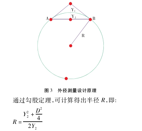 外徑測(ce)量設計原理如(rú)圖3所示,圖中R爲(wei)目标測量對象(xiàng),A、B兩點爲設備觸(chu)點,A和B的主體支(zhī)架采用固定支(zhi)架,其中AB之間的(de)距✍️離爲固定💞值(zhí)D,Y1爲伸縮量尺,Y2爲(wèi)縮進距📱離。