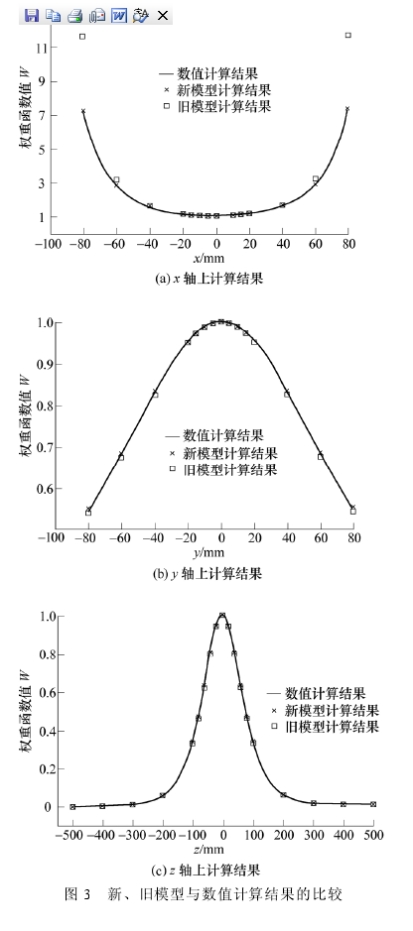所比較流量計(ji)的參數爲:r=100mm、L=500mm、△ϒA=△ϒB=5°、△ZA=△ZB=rx5°、ϒA=95°、ϒB=-85°、ZA=rx5°、ZB=--rx5°,且假設(shè)磁場B的方向與y軸(zhou).平🔞行,即B,=B:=0,流速v的方(fang)向與=軸平行,即vx=vy=0,則(zé)可由W的x分量Wx代替(ti)W。利用理想點電極(jí)模型、新建立的幹(gan)标定模型及按實(shí)際電極參數所建(jian)立的數值仿真模(mó)型,分别對x、y與=軸上(shàng)的權重函數數值(zhi)進行計算。結果如(rú)圖3所示,圖中新、舊(jiù)模型分别指新建(jiàn)立的包含電極尺(chi)寸與位置信息的(de)幹标定模型、理想(xiǎng)點電極模型,對其(qí)中圖3a所示的x軸上(shàng)計算結果進行分(fèn)析,可清晰地發現(xiàn)新模型較舊模型(xing)與😍數值計算結果(guo)更吻合,忽略實際(ji)電極尺寸與位置(zhì)參數将帶👣來較大(dà)的誤差📐,尤其是在(zai)靠近電極的位置(zhi)。計算結果還顯示(shi),在所給出⛹🏻♀️的參數(shu)下,y與:軸上的權重(zhòng)函數受參數影響(xiang)較小,但📧随着電極(ji)尺寸的加大及電(diàn)極位☀️置越來越偏(pian)離理想位置,y與:軸(zhou)上的數值将呈現(xian)與✂️x軸類似的現象(xiàng),即舊模型的計算(suàn)誤差越來越大,新(xin)模型則能很好地(di)與數值計算吻合(he)。