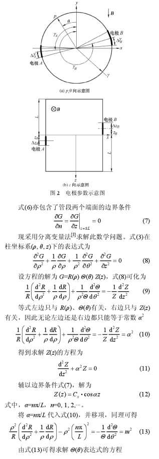 上述(shu)分析說明,有必要(yao)在建模過程中考(kao)慮實際流量計的(de)🔞電極尺寸及位置(zhi)。因此,将半徑爲r、長(zhǎng)度爲2L的電磁✍️流量(liang)計一🏃🏻♂️次傳㊙️感器按(àn)如下方式建模:ρ、θ向(xiang)尺寸及位置❌如圖(tú)2a所💞示,電極A所覆蓋(gai)範圍爲(ρ=r,γA-△ϒA≤θ≤γA+△γA),電極B所覆(fu)蓋範圍爲(ρ=r,γB-△γB≤θ≤γB+△γB),其中γA、△γB爲(wei)表示電極θ向位置(zhi)的變量♋,△γA、△γB爲表示電(dian)🔴極θ向尺寸的變量(liàng),若按照理想點電(dian)極處理,則△γ=π/2,γB=-π/2,△γA=△γB=0;z向尺🧡寸(cùn)及位置如圖🔞2b所示(shi),電極A所覆💞蓋範圍(wei)爲(ZA-△ZA≤Z≤ZA+△ZA),電極B所覆蓋範(fàn)圍爲(ZB-△ZB≤z≤ZB+△ZB),其中ZA、ZB爲表示(shi)電✔️極z向位置的變(biàn)量,△zA小、△zB爲表示電極(ji)z向尺寸的變量,若(ruò)按照理想點電極(ji)處理,則zA=zB=0,△ZA=△ZB=0。