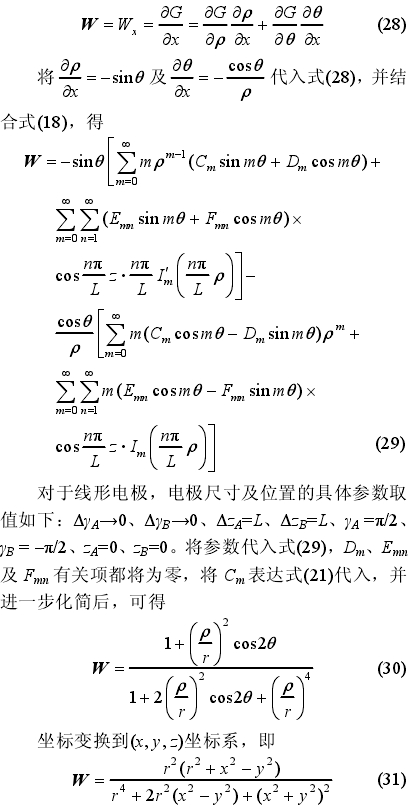 選用SHERCLIFF國的線形電(diàn)極模型及文獻[1]中(zhōng)的點電極模型進(jin)行比較,如上所述(shù),隻需就權重函數(shù)W或W的上級函數Green函(hán)數G的表達式進行(háng)比較即可。