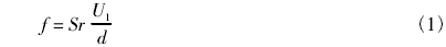 式中(zhong):ƒ爲旋渦(wō)脫落頻(pin)率,Hz;Sr爲斯(si)特勞哈(ha)爾數;U1爲(wèi)發生體(ti)兩側流(liú)體平均(jun1)流速,m/s;d爲(wèi)發生體(tǐ)迎流面(mian)的寬度(dù),m。