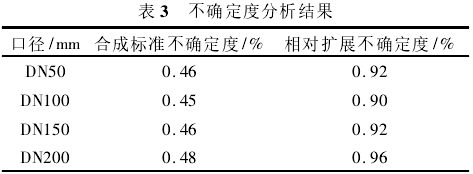 4台(tái)不同口(kou)徑的渦(wo)街流量(liàng)計的不(bú)确定度(dù)分析結(jie)果如表(biao)3所示。