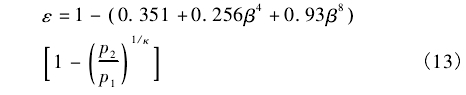 式中:ε爲(wei)可膨脹(zhàng)性系數(shu);β爲節流(liú)孔直徑(jìng)與測量(liang)管直🈲徑(jìng)的比💯值(zhi);p,爲節流(liú)孔上遊(you)壓力,Pa;p2爲(wei)節流孔(kǒng)下遊壓(ya)力,Pa;K爲流(liu)體等熵(shang)指數。