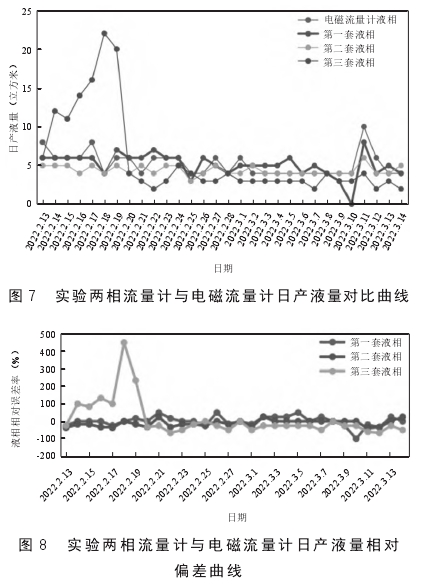 智(zhi)能差壓(yā)流量計(jì)與電磁(ci)流量計(jì)日産液(ye)量相對(dui)偏差在(zài)±20%以内的(de)數據點(dian)占比最(zui)高,爲60%,井(jǐng)口濕氣(qì)氣液兩(liǎng)相流量(liàng)計相對(dui)偏差在(zài)±20%以内的(de)數據點(diǎn)占比最(zui)低,爲13%。