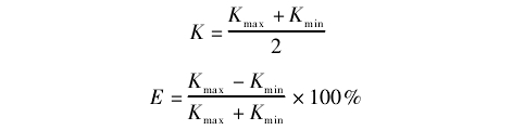 式中(zhōng):K爲平均流量(liang)系數;E爲渦輪(lun)流量計最大(da)示值.誤差;Kmax爲(wèi)流💛量範👈圍内(nèi)各檢定點得(dé)到的系數中(zhōng)最大值;Kmix爲流(liú)量範圍内各(ge)檢🏃🏻♂️定點得到(dào)的系數中最(zui)小值。