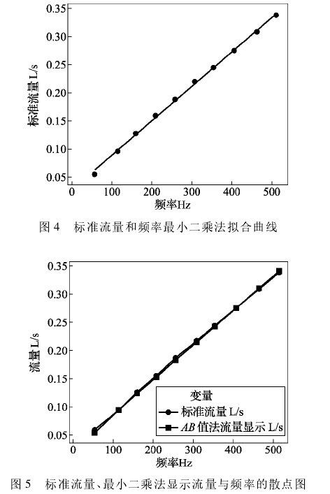 圖5是标準(zhǔn)流量、最小二(er)乘法實際顯(xiǎn)示流量與頻(pin)率的散點📞圖(tu),從圖.上可以(yǐ)看出,根據儀(yí)表最小二乘(cheng)法設置A、B後,實(shí)際使用時流(liú)量顯示與标(biāo)準流量之間(jian)差異很小,說(shuo)明該方法測(cè)量結果偏離(li)真實結果較(jiào)小,也就是測(ce)量誤差較小(xiǎo)。