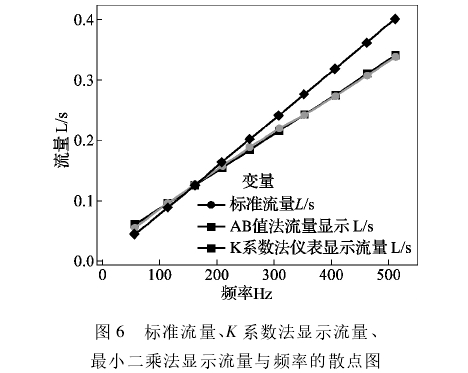 圖6可(kě)知,最小二乘(cheng)法流量曲線(xiàn)與标準流量(liang)曲線基本重(zhong)合,說明流量(liang)偏差很小;K系(xì)數法流量曲(qu)線與标準流(liú)量曲🔞線随着(zhe)頻率的增大(dà)差異也越大(dà),說明流㊙️量偏(pian)差也越大💜。