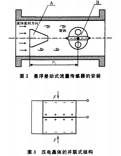 在渦(wo)街流量計中,懸(xuan)浮差動式流量(liang)傳感器的安裝(zhuāng)🧑🏽🤝🧑🏻如圖2所示,傳感(gǎn)器B安裝在旋渦(wo)發生體A的後面(mian).傳感器的軸線(xiàn)與旋渦發生體(tǐ)平行,整個傳感(gan)器都沉浸🏃🏻♂️在流(liu)體中[5].圖中的懸(xuan)浮式差動傳感(gǎn)器在設計中使(shǐ)用了4個壓✔️電晶(jīng)體作爲檢測元(yuan)件,在平闆兩側(cè)對稱固定了兩(liǎng)個㊙️檢測單元,以(yi)形成差動結構(gou).每個檢測單元(yuan)外形爲一個半(ban)圓柱型殼體,殼(ke)體内具有🏃♂️與平(píng)闆軸線平行的(de)通㊙️孔,通孔内有(you)兩個尺寸、質量(liang)和靈📞敏度系數(shù)都相同的🌈壓電(diàn)陶瓷片,兩壓電(dian)陶瓷片之🌈間由(you)一金屬質量塊(kuài)相連,該質量塊(kuai)與兩壓電⚽陶瓷(ci)✊片焊接在一起(qi)組成一個剛體(ti).金屬質量❤️塊同(tong)時也作爲壓電(diàn)陶🐪瓷的輸出電(diàn)🌐極,引出檢測信(xin)号給電荷放大(dà)電路.兩片壓電(diàn)晶體采用并聯(lian)式結構,如圖3所(suo)示,使輸出⛹🏻♀️電荷(hé)量加倍,以達到(dào)增大渦街流量(liang)信号的目的.