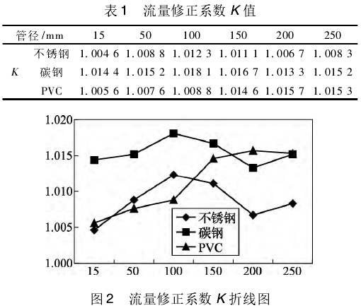流量修(xiū)正系數(shù)K彙總表(biǎo)如表1所(suo)示,K折線(xiàn)圖如圖(tu)2所示。
