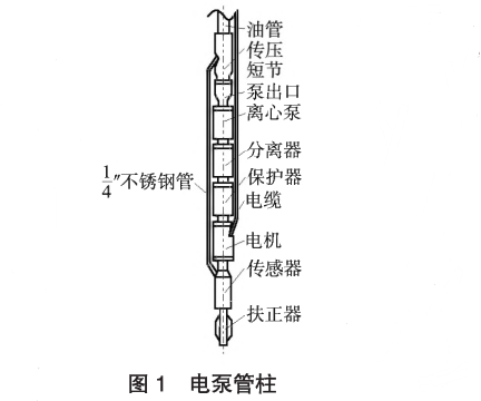 正(zhèng)常電泵管柱上,在(zai)潛油電機的尾部(bu)加裝一台井下傳(chuan)感器,傳感器尾部(bù)加裝扶正器,從傳(chuan)感器頭部引出一(yi)根1/4"不鏽鋼管(圖1)。在(zài)離心泵出口上安(ān)裝引壓接頭,接頭(tóu)上方連接油管至(zhi)井⁉️口。1/4"不鏽鋼管與(yǔ)引壓㊙️接頭相連,将(jiāng)泵出口的壓力傳(chuán)到井下傳🔆感器。鋼(gāng)管上、下均要做好(hao)密封,密封壓力大(da)于40MPa。通過井下通信(xìn)🐅模塊,将傳感💛器采(cai)集的壓力、溫度、振(zhèn)動、流量等參數信(xin)号通過電機尾部(bù)星點,電磁線、動力(lì)電纜傳至地面,然(rán)後通過地面解✨調(diao)模塊讀出參數數(shù)據,進而進行數據(ju)操作與分析。
