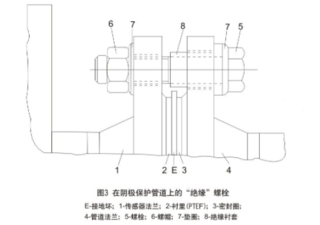 穿過(guo)法蘭的(de)連接螺(luó)栓應采(cai)用絕緣(yuán)材料制(zhì)造的襯(chen)🍉套😘和🔴墊(niàn)📧圈🈲,使螺(luó)栓與法(fǎ)蘭隔離(li)。見圖3