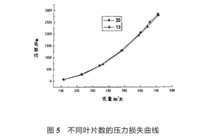 流(liú)量計常用葉(yè)輪葉片數爲(wèi)13,葉片形狀爲(wei)矩形。爲提高(gāo)流量計的靈(ling)敏度作者對(dui)葉輪作了改(gai)造,将葉片數(shu)增爲20,葉片形(xíng)狀設計成葉(ye)頂寬葉根窄(zhai)的倒梯形形(xing)狀梯形尺寸(cun)以保證相同(tong)重疊度爲原(yuan)則。圖5爲分别(bié)采用13和🔱20葉片(piàn)數的🍓葉輪後(hòu)流量計壓損(sun)曲線圖。可看(kàn)到兩條曲線(xiàn)幾乎重合。說(shuo)明在允許範(fan)圍内,葉輪🚶葉(yè)片數的增減(jiǎn)🔴以及葉片形(xíng)狀的改變對(dui)壓力🏃損失的(de)影響可以忽(hū)略。但通過對(duì)起始流量的(de)測量發現,對(duì)13葉片數葉輪(lun),測得流量計(ji)起始流量爲(wei)7.5m³/h,而對20葉片數(shù)葉輪則爲6.5m³/h,可(ke)見适當增加(jiā)葉片數和重(zhong)疊度,可以在(zài)不增加壓損(sǔn)的前提下較(jiao)明顯地提高(gāo)流量計的靈(ling)敏度。